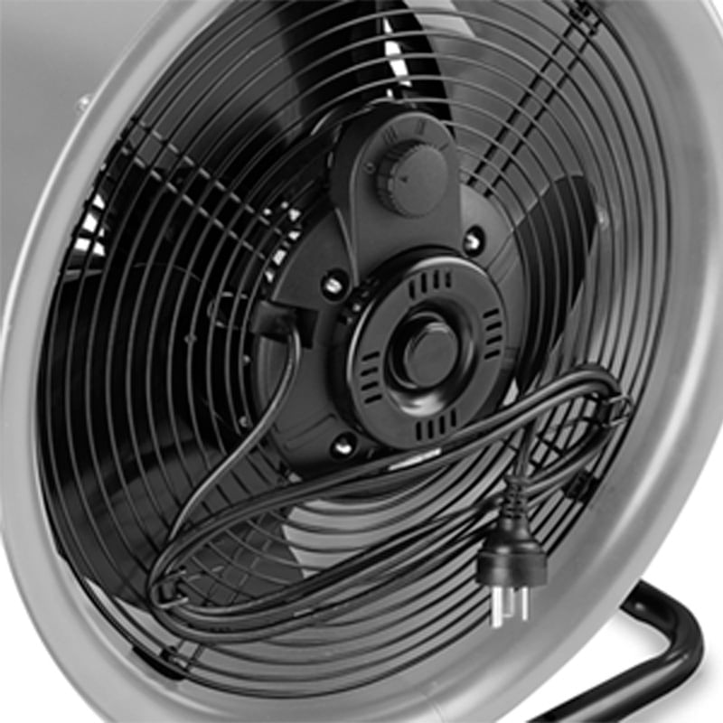 Turboventilador industrial, 3 en 1: Piso, pared, techo. Diametro de 16\". Potencia: 200 watts. Estructura de metal reforzado. 3 Aspas de aluminio. 3 Velocidades. Bajo nivel sonoro. Cabezal reclinable para mejor direccionamiento del aire. Motor con doble rodamiento blindado. Practica manija para traslado. Enrollacable. Patas antideslizantes.